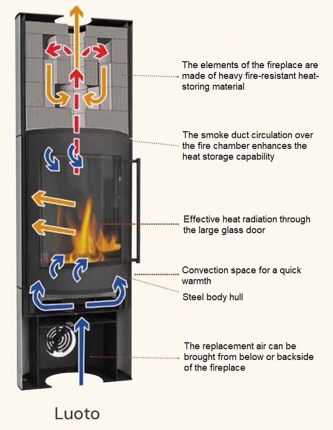 Linnatuli-tulisijojen savukanavat sijaitsevat aina takan sisäelementissä, ja ympärillä on erillinen kuorielementti. Tämä takaa turvallisen ja kestävän rakenteen sekä pitää tulisijan pinnan tasaisen lämpimänä. Tulisijan ulkopinnan voit pinnoittaa laastilla, laatoilla tai luonnonkivillä, mikä antaa sinulle mahdollisuuden muokata tulisijaa haluamallasi tavalla.