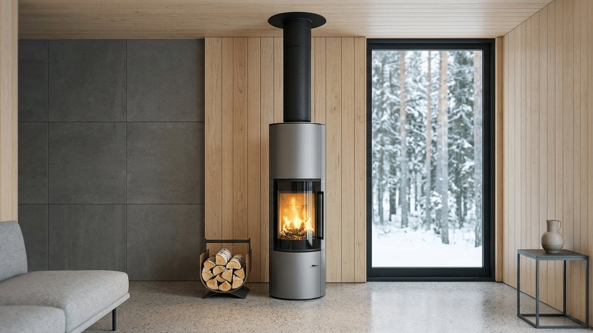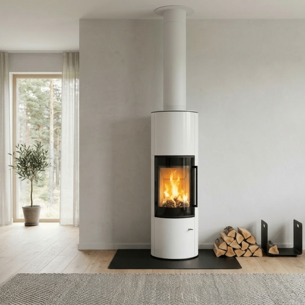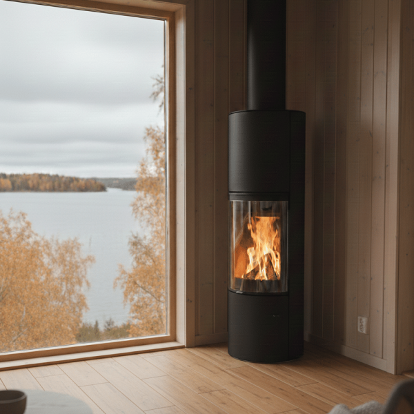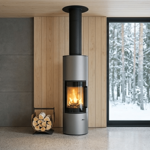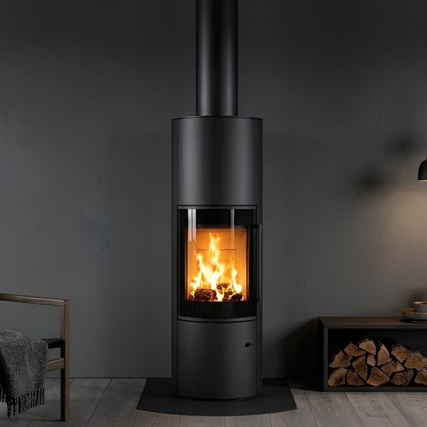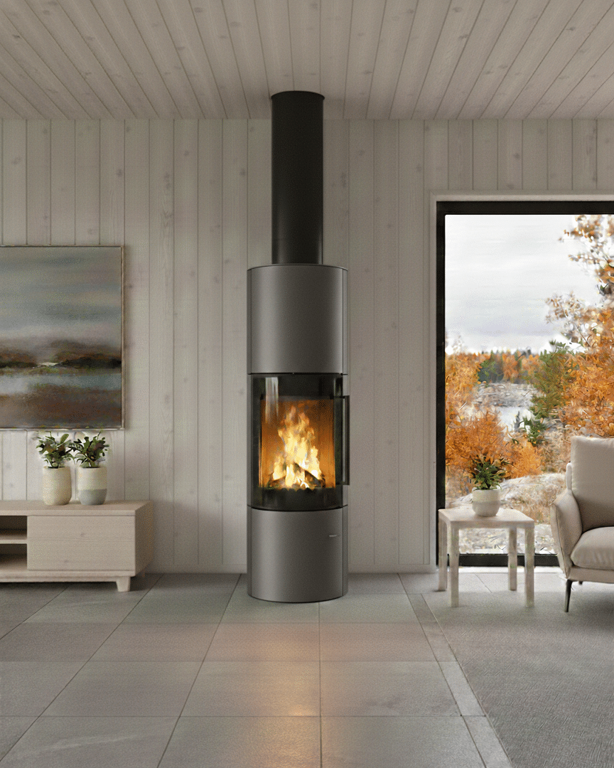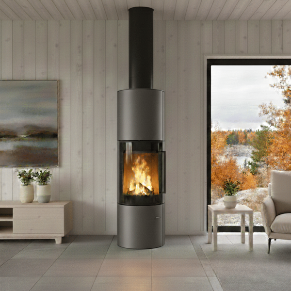 ja tulen lohduttavan läsnäolon. Sen tyylikäs, sylinterimäinen teräsrunko luo rauhallisen, modernin keskipisteen, joka sopii hyvin sekä minimalistisiin että kodikkaisiin sisustuksiin. Pehmeä säteilylämpö ja luonnollinen kiertoilmaominaisuus täyttävät tilan lempeästi ja luovat lämpimän ja kutsuvan