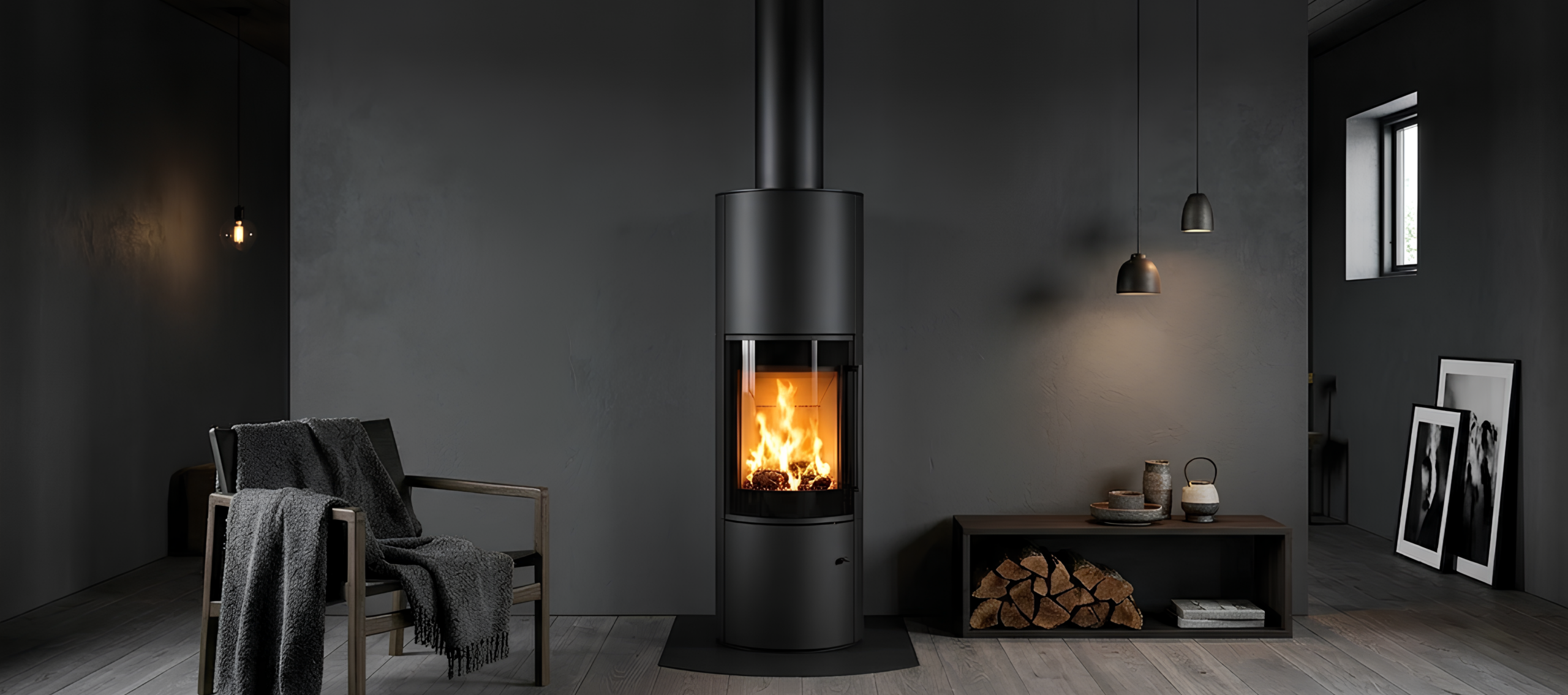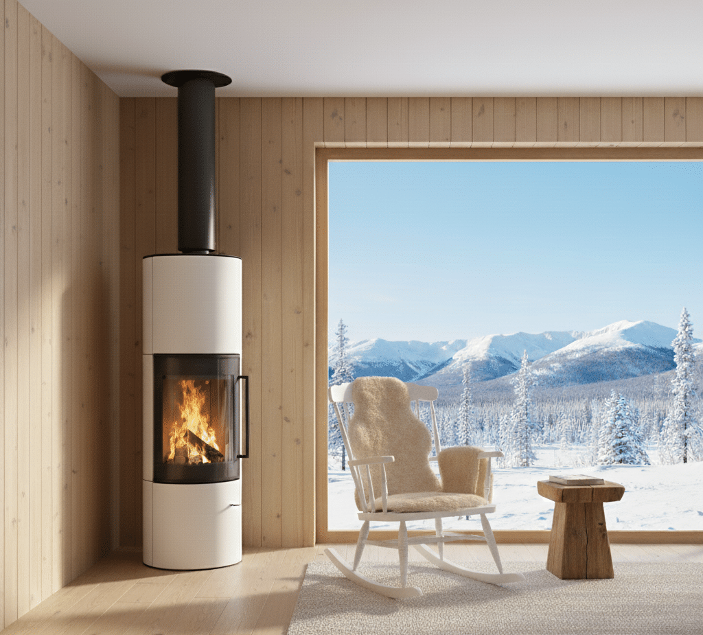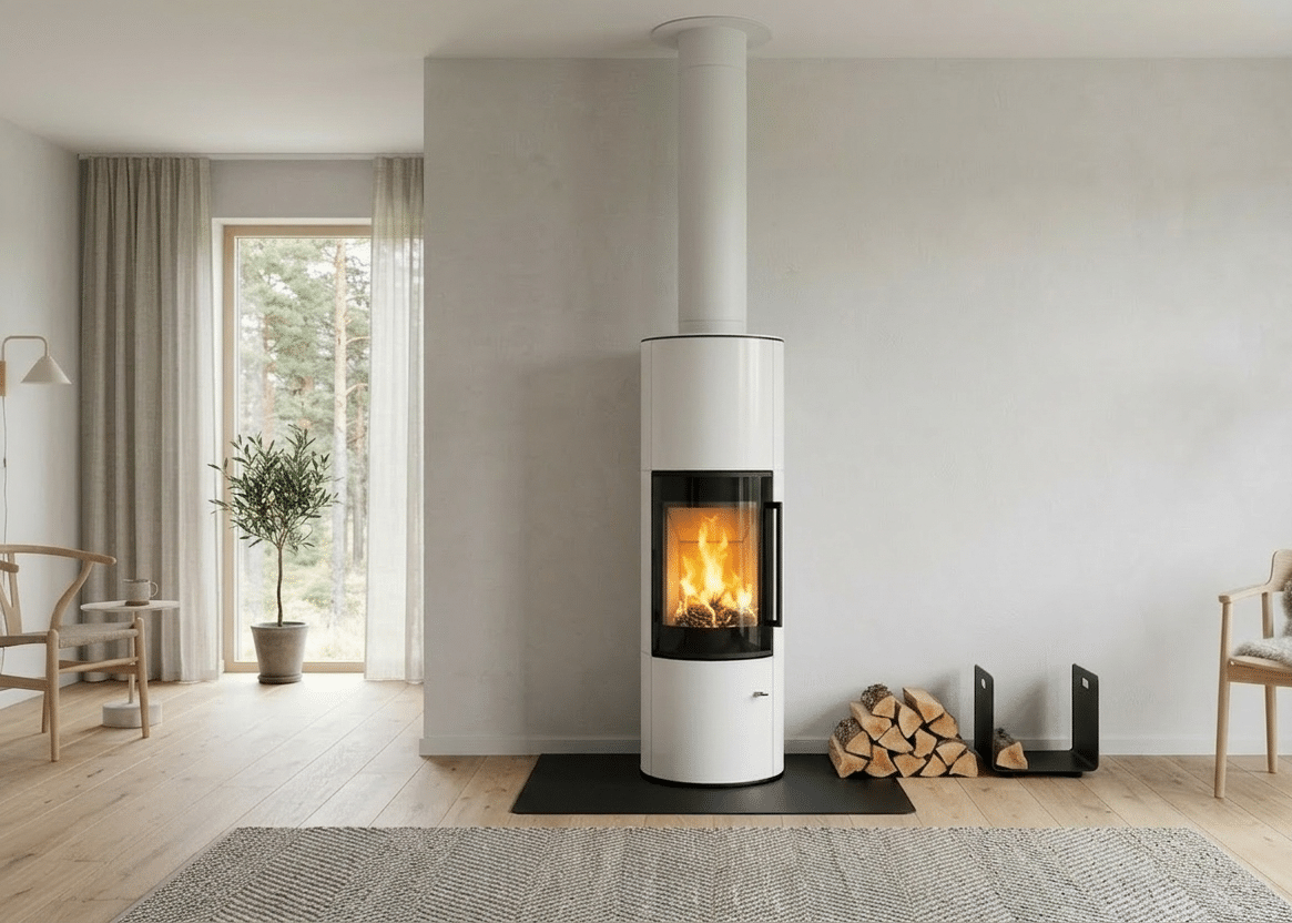 ja tulen lohduttavan läsnäolon. Sen tyylikäs, sylinterimäinen teräsrunko luo rauhallisen, modernin keskipisteen, joka sopii hyvin sekä minimalistisiin että kodikkaisiin sisustuksiin. Pehmeä säteilylämpö ja luonnollinen kiertoilmaominaisuus täyttävät tilan lempeästi ja luovat lämpimän ja kutsuvan